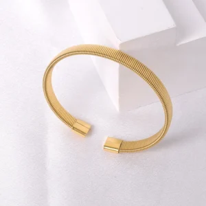 A sleek and durable titanium steel bangle with 18K gold plating for everyday elegance.