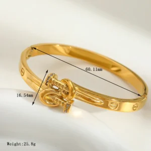 An artistic geometric bangle adorned with sparkling zircon and finished in 18K gold plating.